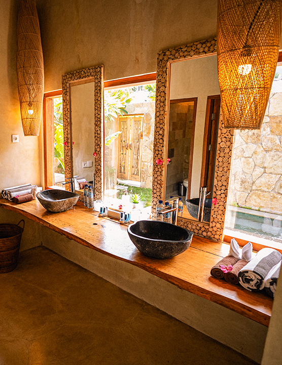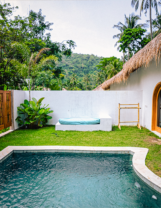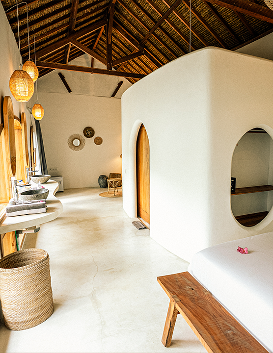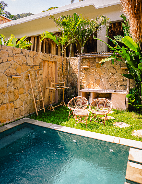 Cada villa de Lombok Souls fue diseñada para combinar confort, privacidad y naturaleza en perfecta armonía. Todas cuentan con terraza y piscina privada, cama king size, baño completo, aire acondicionado, Wi-Fi e interiores elegantes rodeados de jardines tropicales: todo lo que necesitas para relajarte y sentirte como en casa en el paraíso.